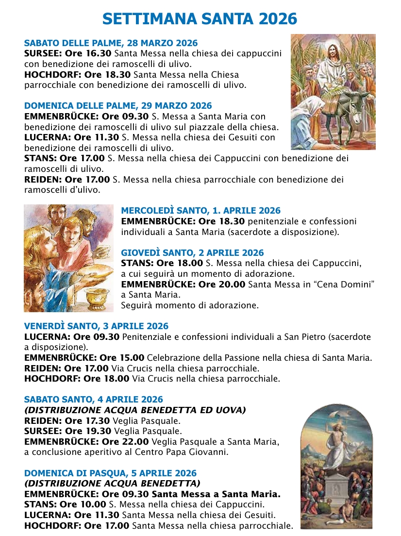 Settimana Santa 2026 Eccovi il programma delle celebrazioni della Settimana Santa. Scarica il volantino in PDF